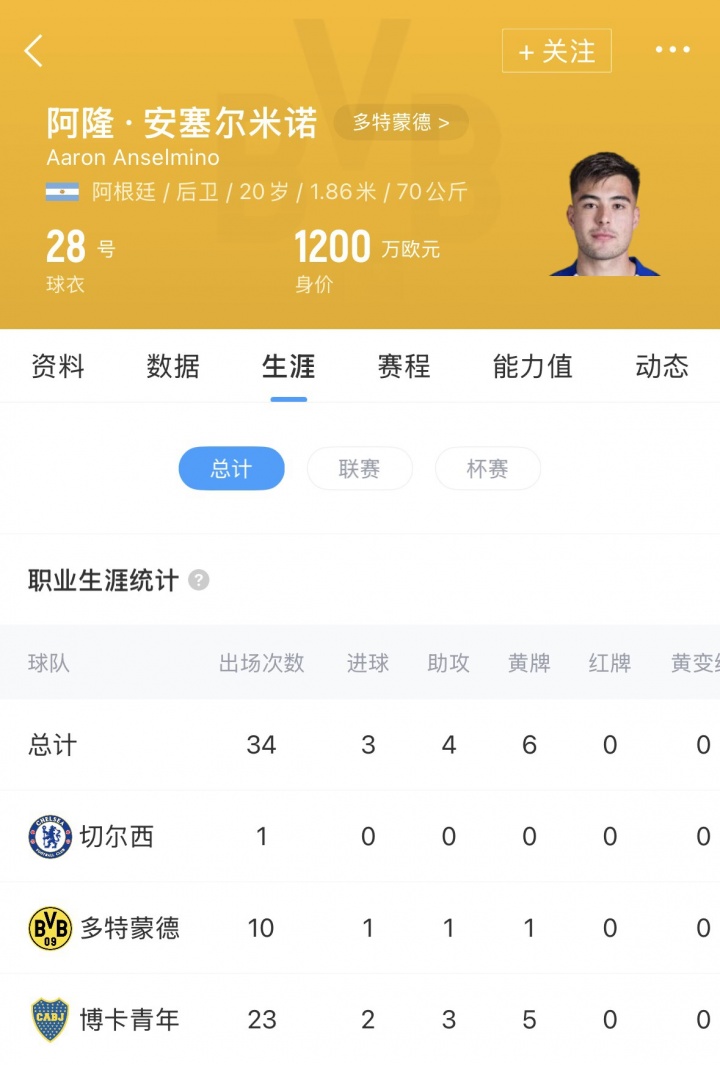 安塞尔米诺为多特蒙德出场10次,出场585分钟,打进1球,助攻1次。
