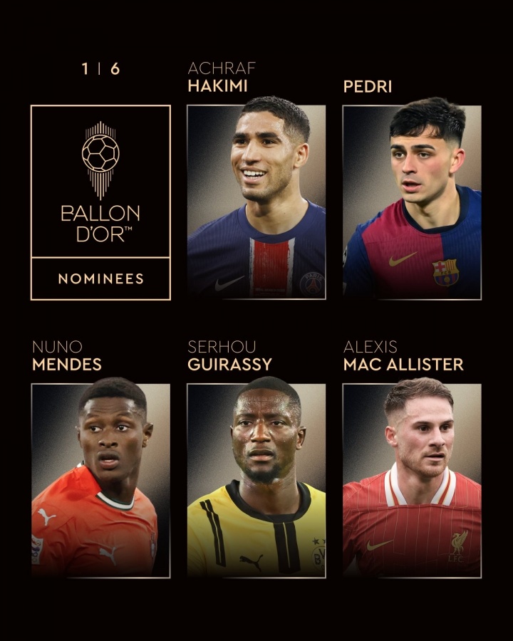 阿什拉夫、佩德里、努诺-门德斯、吉拉西、麦卡利斯特拉菲尼亚、约克雷斯、杜埃、邓弗里斯、麦克托米奈登贝莱、哈兰德、若奥-内维斯、贝林厄姆、莱万萨拉赫、帕尔默、法比安、维尼修斯、赖斯维蒂尼亚、姆巴佩、多纳鲁马、奥利塞、维尔茨亚马尔、克瓦拉茨赫利亚、凯恩、范迪克、劳塔罗